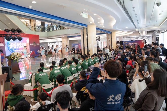中午时分,活动现场便已热闹非凡。球迷们早早来到现场,或在球衣展示墙前驻足欣赏,或在出征助力签名墙上留下真挚祝福,用自己的方式为球队加油“打CALL”。大屏幕上的训练短片,记录着球队在休赛期从未松懈的努力。