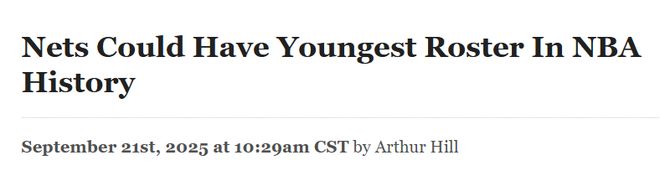 北京时间9月22日,《纽约邮报》记者刘易斯报道称,布鲁克林篮网队成为NBA史上首支在单届选秀大会中选中五位首轮新秀的球队,创下历史纪录。刘易斯指出,根据最终阵容的敲定情况,篮网队有望超越2022-23赛季的休斯顿火箭队,成为NBA史上最年轻的球队。当时的那支火箭平均年龄是22.1岁。