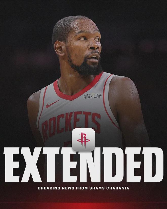 2025-26赛季正式开始前,凯文-杜兰特与新东家休斯顿火箭签下了一份提前续约合同,新合同为2年9000万美元,包含第二年即2027-28赛季的球员选项。