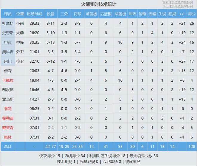火箭全队7人场均得分上双:小贾巴里-史密斯场均15分5.2篮板1.4助攻1.4抢断1.4盖帽,三项命中率:43.5%,36.7%,90.9%。阿门场均15分6篮板5.8助攻0.8抢断2.6失误,三项命中率:46.7%,9.1%,69.2%。三分球合计11中1!