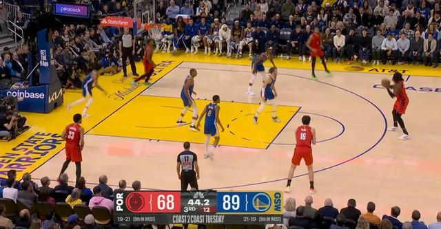 没有阿夫迪亚的开拓者是什么水平?基本上就可以原地争状元了。阵地战完全没有章法,只能靠着转换零敲碎打拿一些分数,球完全控不住,失误率爆炸,被勇士一节多就打花了。第三节开拓者