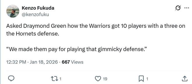 而勇士队之所以多点开花,一方面是因为球员状态回暖,另外一方面也是因为黄蜂队堪称“奇葩”的防守策略。