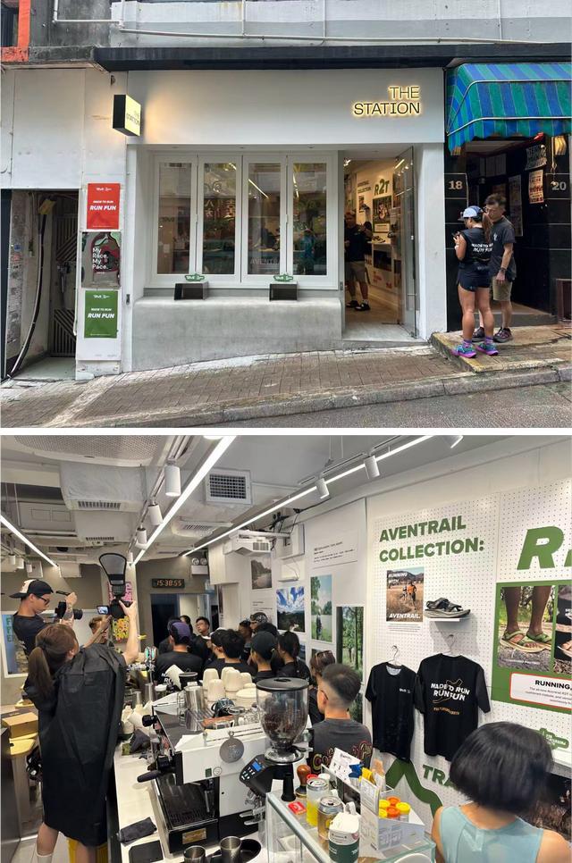 这不禁让我想到位于香港上环的The Station。这是一家服务跑者的咖啡馆——可以存包、补充水分,墙上挂满了各地马拉松和越野跑的号码簿,店里还会播放各种跑步比赛的录像。跑者们进进出出,补给、闲聊、研究装备,一杯咖啡下肚,恢复一下,然后再继续训练。与跑步相关的品牌也会经常在此地举行例跑、展览、分享会等社群活动。
