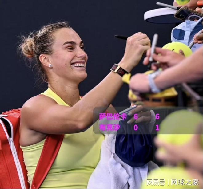 在布里斯班,萨巴伦卡将继续她的比赛征程,今天中午在四分之一决赛中以6-3 6-3横扫五号种子凯斯,晋级四强,半决赛将对阵穆霍娃。