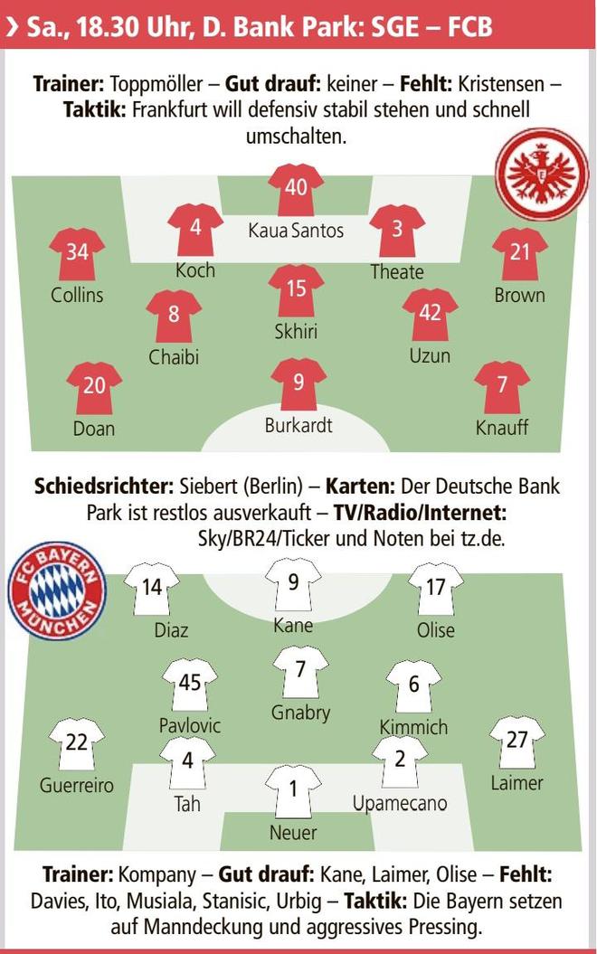 雷速体育10月4日讯 北京时间10月5日00:30,德甲第6轮,法兰克福坐镇主场迎战德甲领头羊拜仁慕尼黑,本场比赛开始之前,德国媒体《慕尼黑日报》预测了双方的首发阵容,拜仁慕尼黑由目