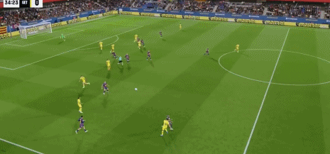第27分钟,巴萨左路压上,佩德里拿球突入禁区倒三角横传门前,莱万小禁区内抢点慢了半拍没有铲到皮球错失良机。第34分钟,加西亚后场大脚往前抡,拉菲尼亚中线前启动没有越位,拉菲尼亚插上中圈弧顶前凌空精妙斜传到左侧,托雷斯跟进也刚好是没有越位,托雷斯拿球突到禁区弧顶处处,单刀冷静推射得手,托雷斯梅开二度,巴萨2:0领先。第41分钟,巴萨中路进攻,莱万拿球强行突入禁区大力扫射,门将索里亚奋力将球扑出。1分钟后巴萨又是中场过顶传球策动进攻,托雷斯插上杀入禁区右侧调整好脚步,半单刀直接半转身凌空抽射,BOOM的一声皮球被横梁挡出,赫塔菲逃过一劫,托雷斯无缘帽子戏法。