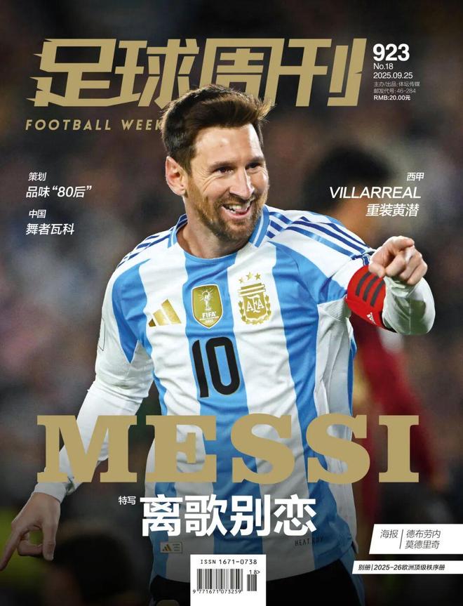 封面第923期《足球周刊》现货热销附赠2025-26赛季欧洲顶级秩序册别册本期杂志附赠《2025-26赛季欧洲顶级秩序册》海报德布劳内莫德里奇主题卡本色而立③④策划当梅西、C罗、