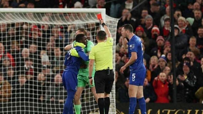 北京时间11月25日凌晨,英超第12轮,埃弗顿客场挑战曼联。比赛第15分钟,场上竟上演令人瞠目的一幕——埃弗顿中场伊德里萨·盖耶因掌掴自家队友,被主裁判直接红牌罚下,成为本场焦点事件。