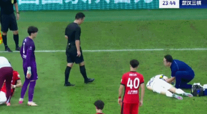比赛的第23分钟,李帅在边路拼抢时解围之后一脚直接蹬在邓涵文的小腹。随后,两人痛苦倒地。从慢镜头来看,李帅并没有收腿,而是直接蹬在了邓涵文的小腹,肘部也撞击了邓涵文的面部。