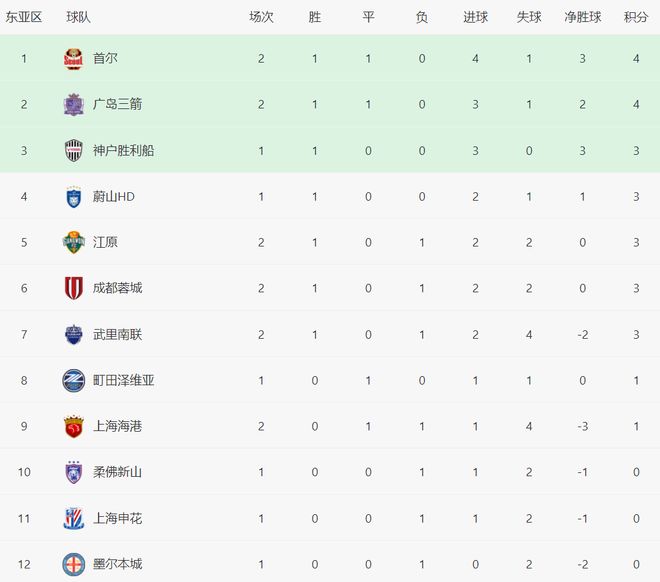 随着海港11绝平广岛,蓉城10,亚冠最新积分榜:中超球队夺首胜