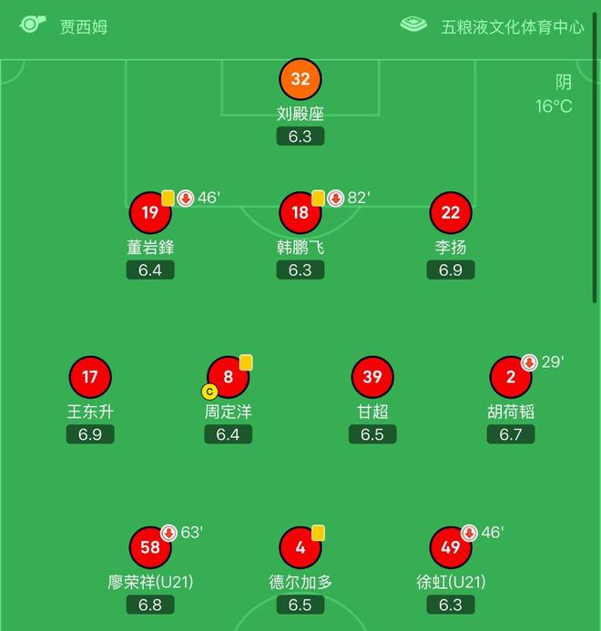 成都蓉城方面,外援古尔芬克尔、费利佩、提莫-莱切特都是替补出战。