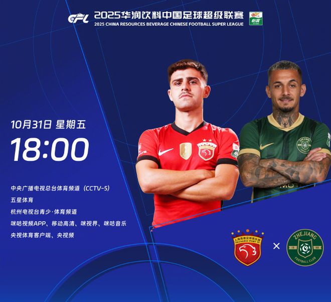北京时间10月31日18点,中超第29轮一场焦点战打响,卫冕冠军上海海港坐镇主场迎战浙江队,而本场比赛双方的首发阵容也已经出炉。